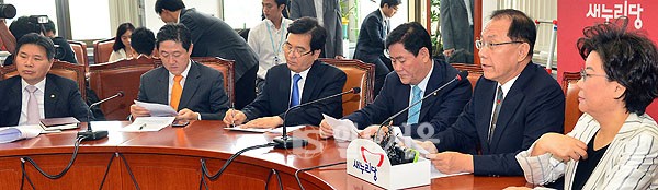 5일 오전 국회 새누리당 대표실에서 열린 최고위원회의에서 황우여 대표가 이석기 의원 체포동의안 가결 관련 이야기를 하고 있다.