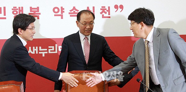 9일 오후 국회 새누리당 대표실에서 열린 법무부 당-정 간담회에서 황우여 대표와 황교안 법무부 장관이 인사를 나누고 있다. 정대웅 기자 photo@ilyoseoul.co.kr 정대웅 기자 photo@ilyoseoul.co.kr 저작권자 © 일요서울i 무단전재 및 재배포 금지 정대웅 기자 다른기사 보기