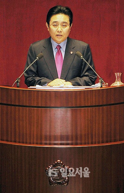 8일 열린 국회 본회의에서 전병헌 민주당 원내대표가 교섭단체 대표연설을 하고 있다.