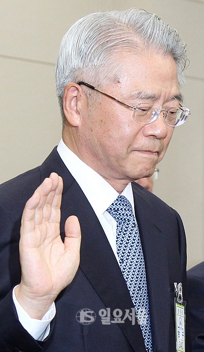 현재현 동양그룹 회장이 17일 오후 국회에서 열린 정무위 국정감사에서 증인선서를 하고 있다.
