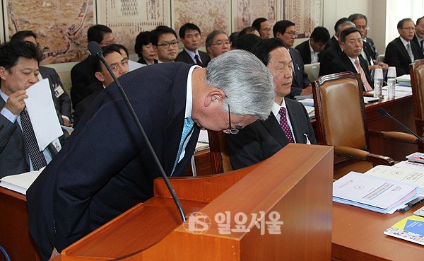 문용린 서울시 교육감이 22일 오전 국회에서 열린 교육문화체육관광위원회 국정감사에서 업무보고를 마친 후 인사하고 있다.
