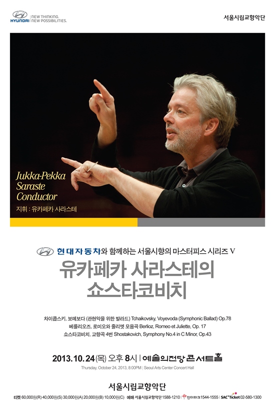 지휘는 현재 쾰른 서독일 방송교향악단을 맡고 있는 세계 정상급 지휘자 유카페카 사라스테가 맡았다. 그는 협연자 없이 쇼스타코비치의 교향곡 4번을 비롯해 차이콥스키와 베를리오즈의 관현악을 선보일 예정이다.