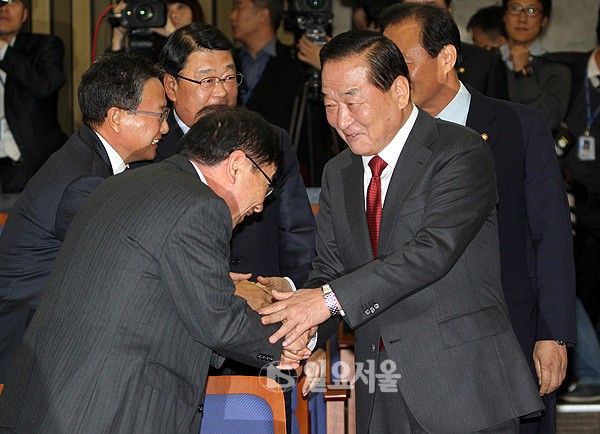 서청원 새누리당 의원이 4일 오후 국회에서 열린 의원총회에 참석하며 동료 의원들의 축하를 받고 있다. 정대웅 기자 photo@ilyoseoul.co.kr 정대웅 기자 photo@ilyoseoul.co.kr 저작권자 © 일요서울i 무단전재 및 재배포 금지 정대웅 기자 다른기사 보기