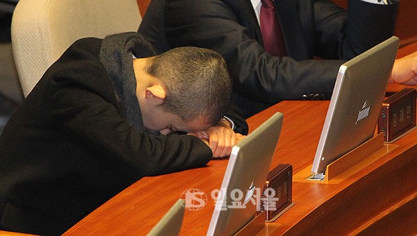 통합진보당 김재연 의원이 19일 오전 국회 본회의장에서 열린 정치분야 대정부질문에서 졸고 있다.