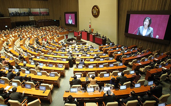 심상정 정의당 대표가 20일 국회 본회의장에서 열린 외교-통일-안보분야 대정부질문에서 비교섭단체 대표연설을 하고 있다.