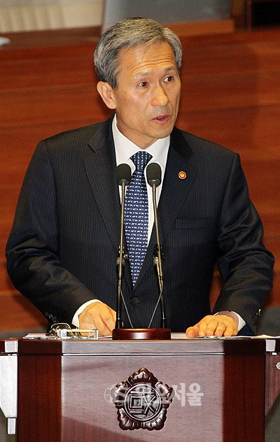 김관진 국방부 장관이 20일 국회 본회의장에서 열린 외교-통일-안보분야 대정부질문에서 의원들의 질문에 답변하고 있다.