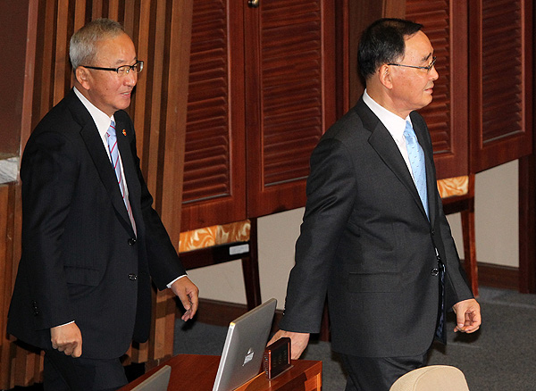 정홍원 국무총리와 현오석 경제부총리가 21일 국회에서 열린 경제분야 대정부질문에 참석하기 위해 본회의장에 들어서고 있다. 정대웅 기자 photo@ilyoseoul.co.kr 정대웅 기자 photo@ilyoseoul.co.kr 저작권자 © 일요서울i 무단전재 및 재배포 금지 정대웅 기자 다른기사 보기