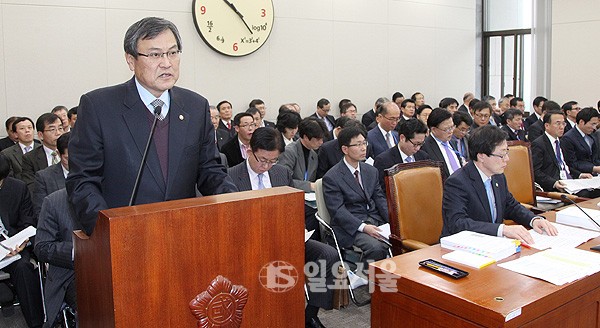 최문기 미래창조과학부 장관이 27일 오전 국회에서 열린 미래창조과학방송통신위원회 전체회의에서 업무보고를 하고 있다.