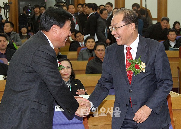 황우여 새누리당 대표가 27일 오후 국회 의원회관에서 박기춘 민주당 의원 주최로 열린 소방재정 확충 법제화 입법공청회에서 박 의원과 인사를 나누고 있다. 정대웅 기자 photo@ilyoseoul.co.kr 정대웅 기자 photo@ilyoseoul.co.kr 저작권자 © 일요서울i 무단전재 및 재배포 금지 정대웅 기자 다른기사 보기