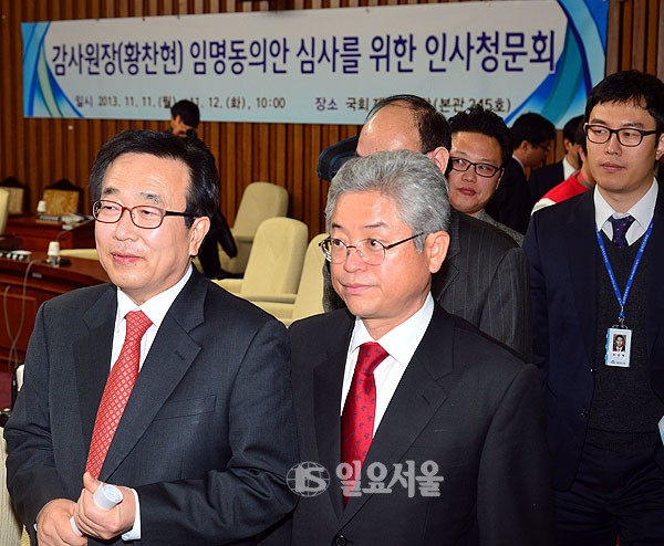 28일 오전 국회에서 열린 황찬현 감사원장 후보자 인사청문특위 전체회의에서여당 단독으로 보고서를 채택한가운데 서병수위원장과 이철우 간사가 회의장을 나서고 있다.