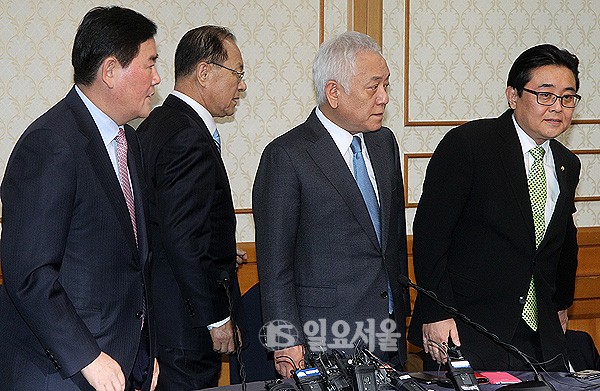 2일 오후 국회 귀빈식당에서 열린 정국 정상화를 위한 여-야 4자회담에서 황우여 새누리당 대표와 김한길 민주당 대표가 대화한 후 자리를 이동하고 있다. 왼쪽부터 최경환 새누리당 원내대표, 황우여 새누리당 대표, 김한길 민주당 대표, 전병헌 민주당 원내대표. 정대웅 기자 photo@ilyoseoul.co.kr 정대웅 기자 photo@ilyoseoul.co.kr 저작권자 © 일요서울i 무단전재 및 재배포 금지 정대웅 기자 다른기사 보기