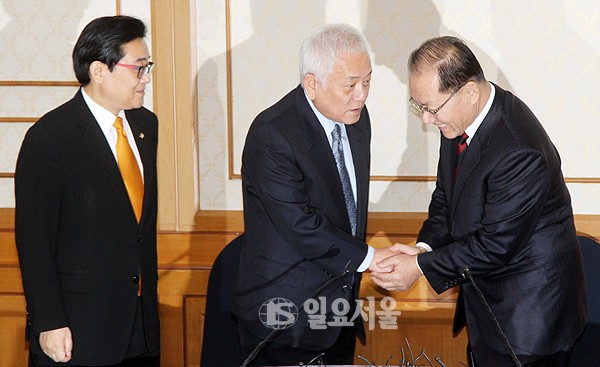 3일 국회 귀빈식당에서 열린 여-야 대표 4자회담에서 김한길 민주당 대표와 황우여 새누리당 대표가 인사를 나누고 있다. 왼쪽부터 전병헌, 김한길, 황우여, 최경환. 정대웅 기자 photo@ilyoseoul.co.kr 정대웅 기자 photo@ilyoseoul.co.kr 저작권자 © 일요서울i 무단전재 및 재배포 금지 정대웅 기자 다른기사 보기