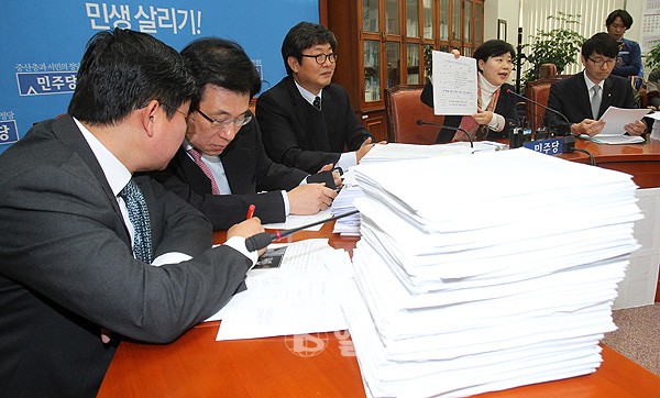 국회 법사위 소속 야당 의원들이 4일 오전 국회에서 기자회견을 열고 국정원 직원들이 유포한 121만여건의 정치ㆍ대선 관련 트윗글 분석 결과를 공개하고 있다. 야당 의원들은 "국정원이 ‘봇(bot)’, ‘트위터피드(TwitterFeed)’, ‘트윗 덱(TweetDeck)’ 등 자동 전송 프로그램을 통해 직원들이 직접 작성한 글이나 보수논객의 블로그, 트윗글을 트위터 등을 통해 조직적으로 퍼날랐다"고 주장했다.