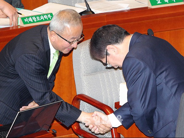 4일 오후 국회에서 열린 예산결산위원회 전체회의에서 황찬현 신임 감사원장과 현오석 경체부총리가 인사를 나누고 있다. 정대웅 기자 photo@ilyoseoul.co.kr 정대웅 기자 photo@ilyoseoul.co.kr 저작권자 © 일요서울i 무단전재 및 재배포 금지 정대웅 기자 다른기사 보기