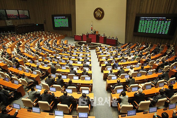 5일 오후 열린 국회 본회의에서 국가정보원 등 국가기관의 정치적 중립성 강화를 위한 제도개선 특별위원회 구성 결의안이 통과되고 있다.
