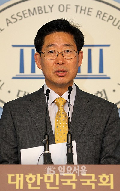 11일 국회 정론관에서 양승조 민주당 의원이 새누리당이 제출한 자신의 제명안에 대한 입장을 밝히기 위해 기자회견을 갖고 있다.