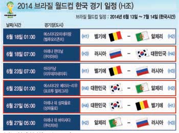 브라질 월드컵은 조 추첨을 시작으로 열띤 경쟁에 접어들었다. H조에 속한 한국 역시 그리 호락호락하지 않은 상대팀과 경쟁을 벌이게 됐다. 홍 감독은 “대표팀의 기량이 70% 이상은 올라왔다”고 평가한 만큼 남은 기간 100%의 전력을 이끌어 내야 16강 진출에 승산이 있다는 게 전문가들의 분석이다. 한국은 현재 상대팀에 비해 객관적인 평가에서 열세에 몰려 있다. 그러나 2000년대 들어 월드컵 성적만 놓고 보면 한국이 H조의 최강자라는 점에 주목해야 한다.