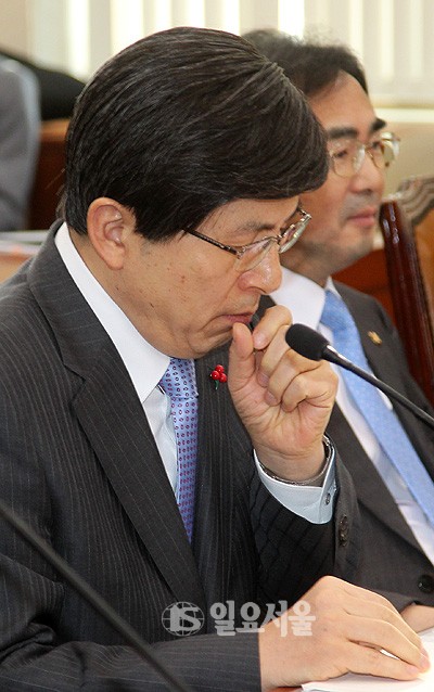황교안 법무부 장관이 18일 오전 열린 국회 법제사법위원회 전체회의에 출석해 헛기침을 하고 있다.