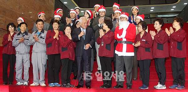 24일 국회 로텐더홀에서 민주당 을지로위원회 주최로 열린 '국회 청소노동자와 함께하는 크리스마스 이벤트' 에서 김한길 민주당 대표가 비정규직 노동자들에게 인사말을 하고 있다. 정대웅 기자 photo@ilyoseoul.co.kr 정대웅 기자 photo@ilyoseoul.co.kr 저작권자 © 일요서울i 무단전재 및 재배포 금지 정대웅 기자 다른기사 보기