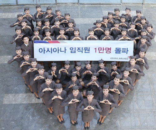 아시아나는 오는 14일 강서구 오쇠동 아시아나타운에서 열린 창립기념일 기념식에서 신입사원 100명(캐빈86명, 운항승무원 14명)이 입사식을 통해 임직원 1만명 돌파를 선언한다.